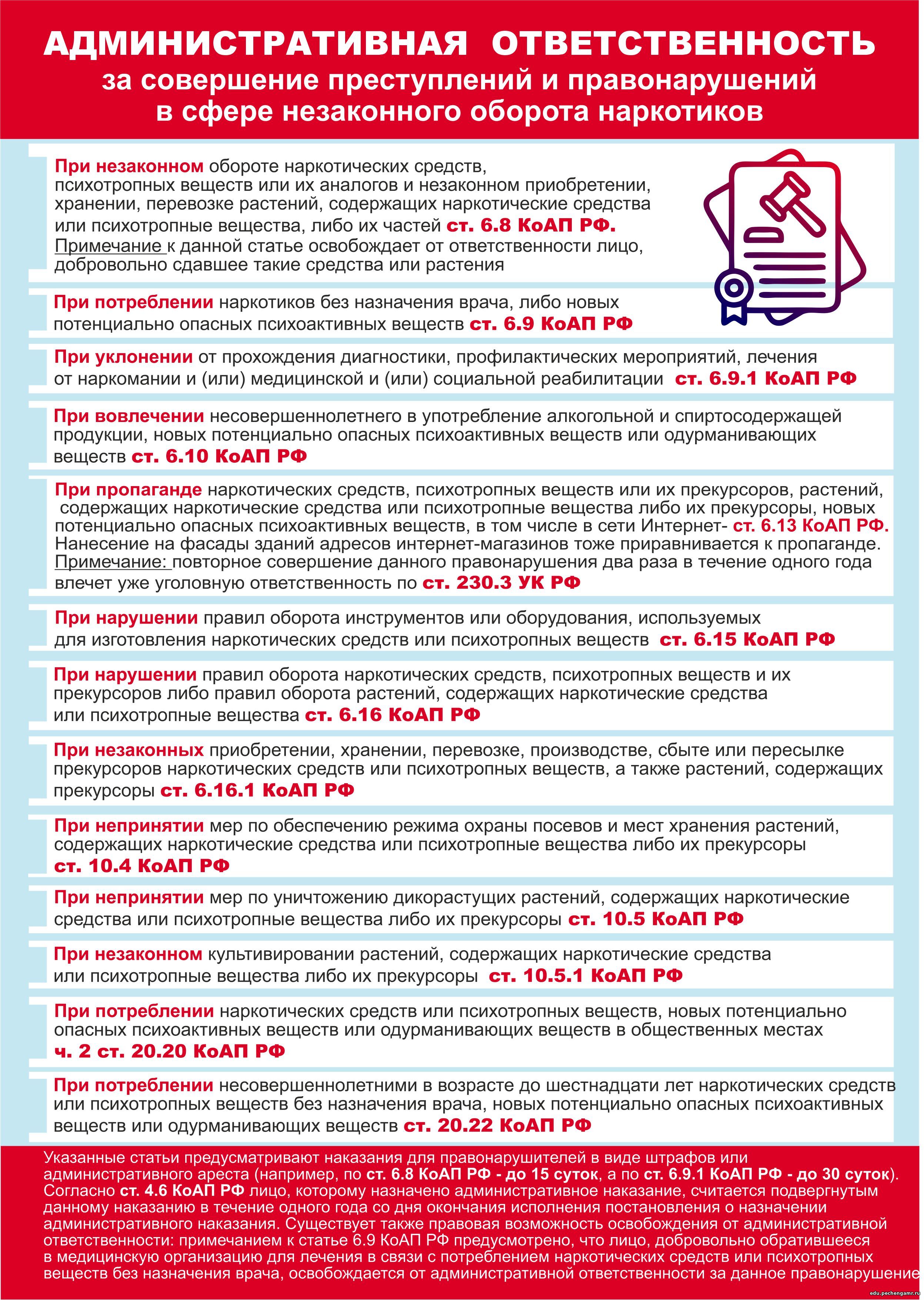 Об административной ответственности за совершение правонарушений в сфере незаконного оборота наркотиков, для использования в профилактической антинаркотической деятельности ОТКРЫТЬ