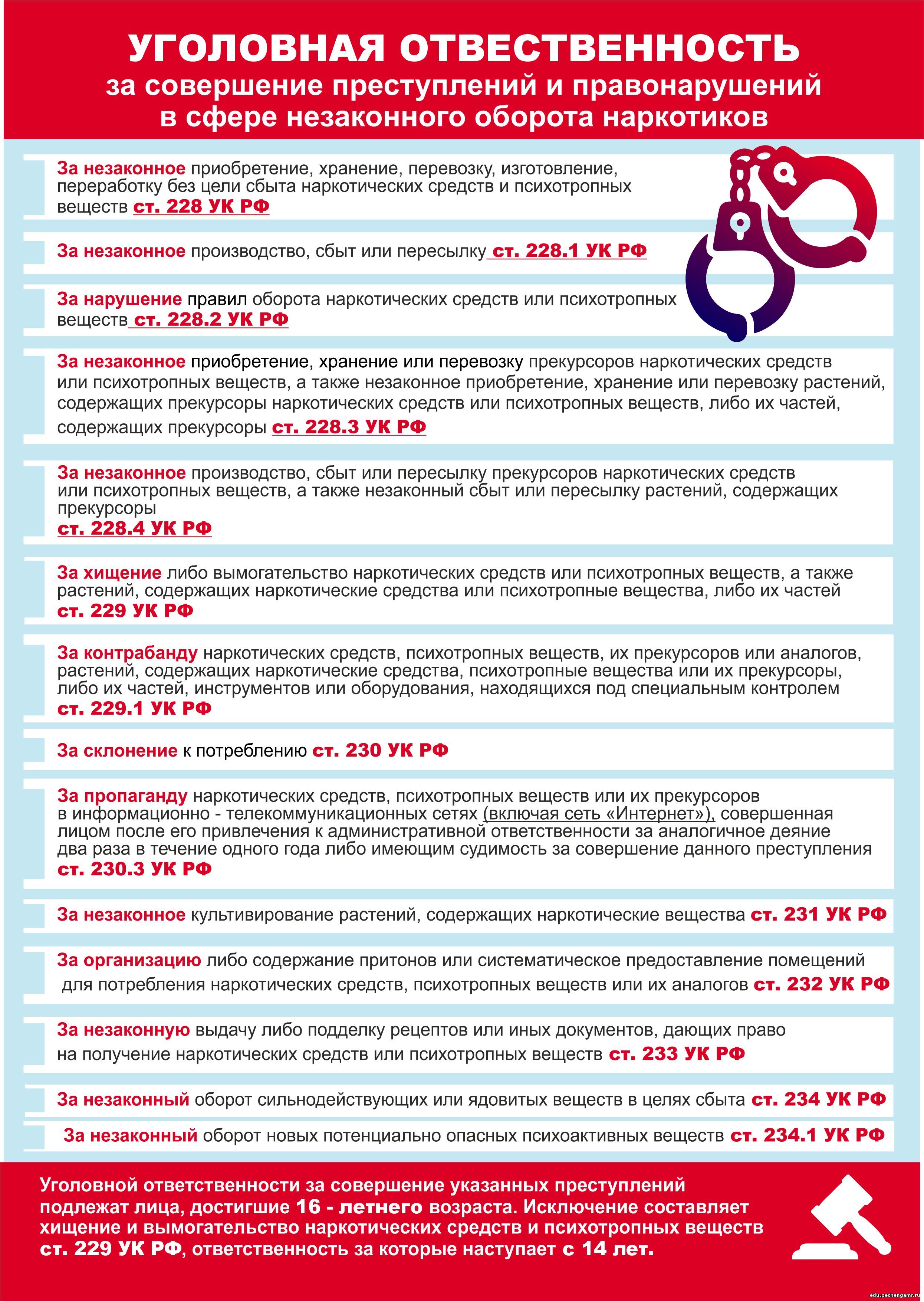 Об уголовной ответственности за совершение правонарушений в сфере незаконного оборота наркотиков, для использования в профилактической антинаркотической деятельности ОТКРЫТЬ