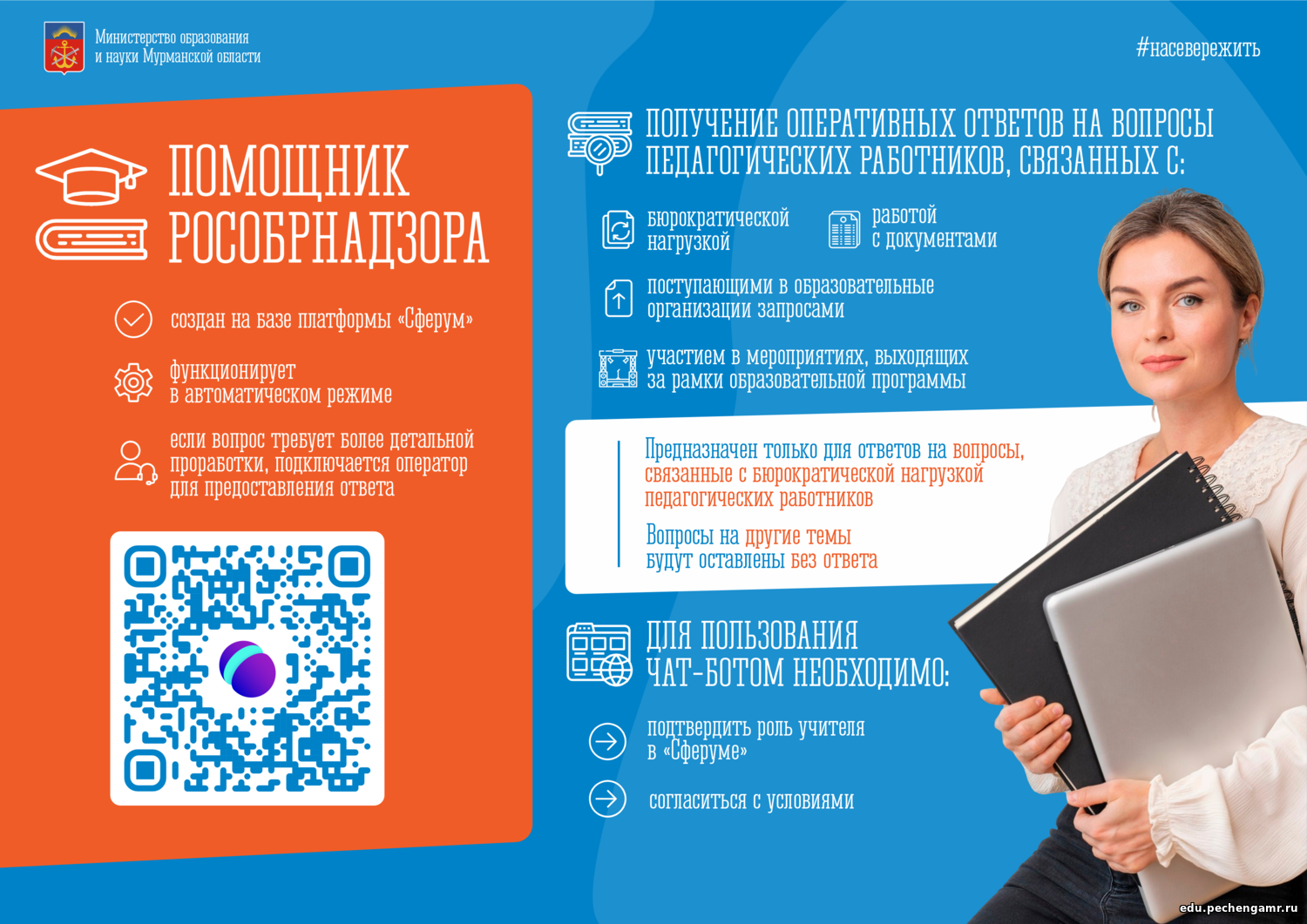 Федеральной службой по надзору в сфере образования и науки (далее - Рособрнадзор) проводится опрос среди педагогических работников по вопросам снижения бюрократической нагрузки. QR-код на опрос ОТКРЫТЬ